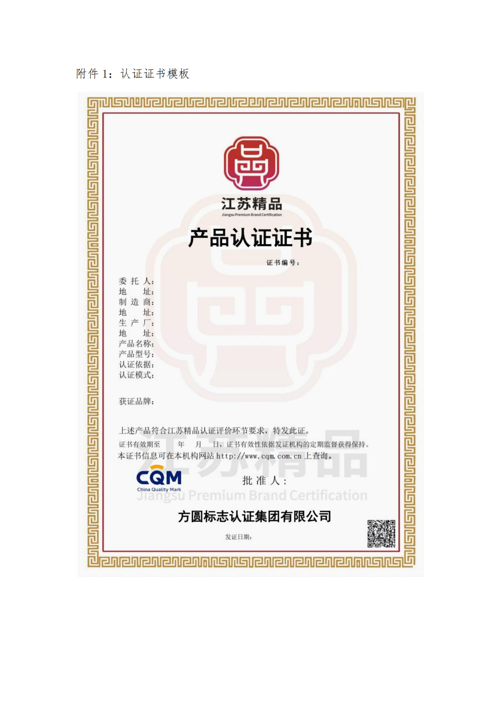 2. “江苏精品”认证证书: