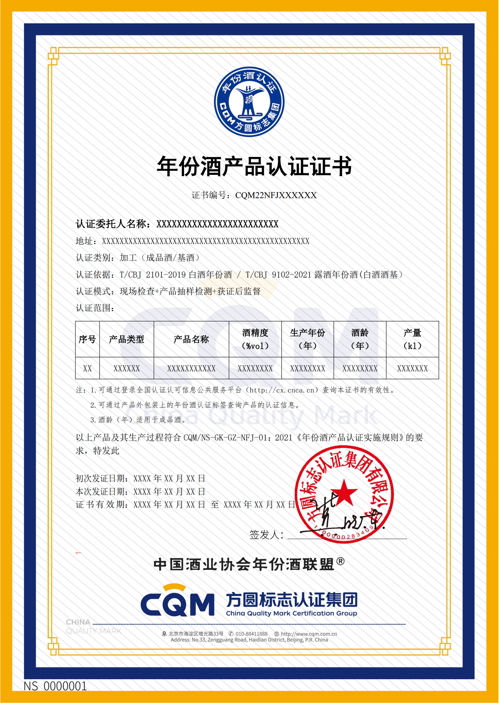 年份酒产品认证