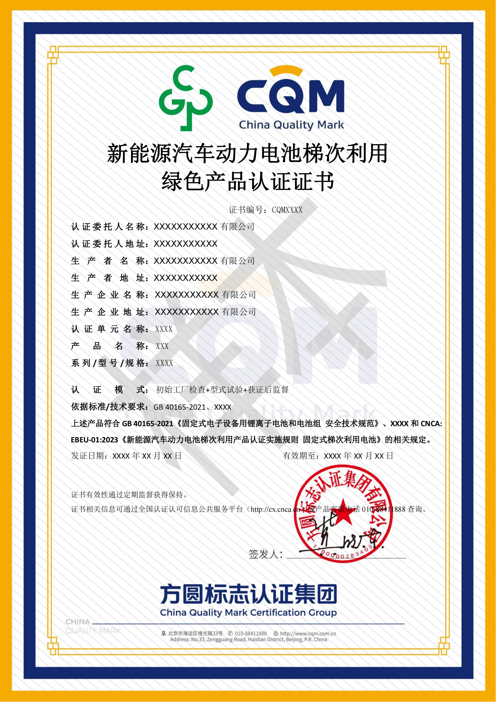 新能源汽车动力电池梯次利用产品认证