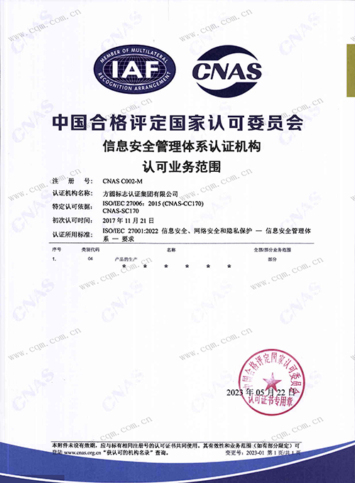 信息安全管理体系认证认可证书
