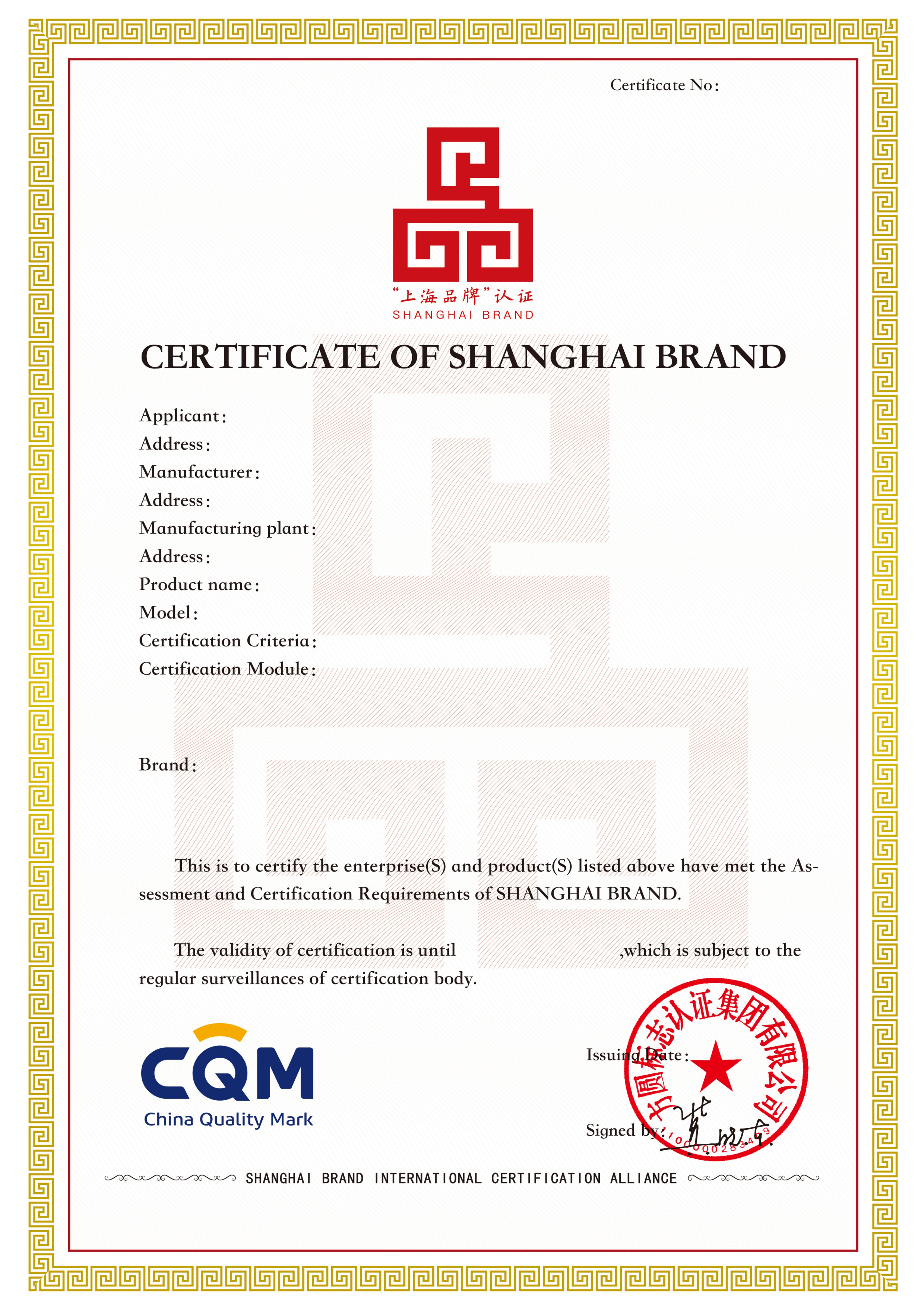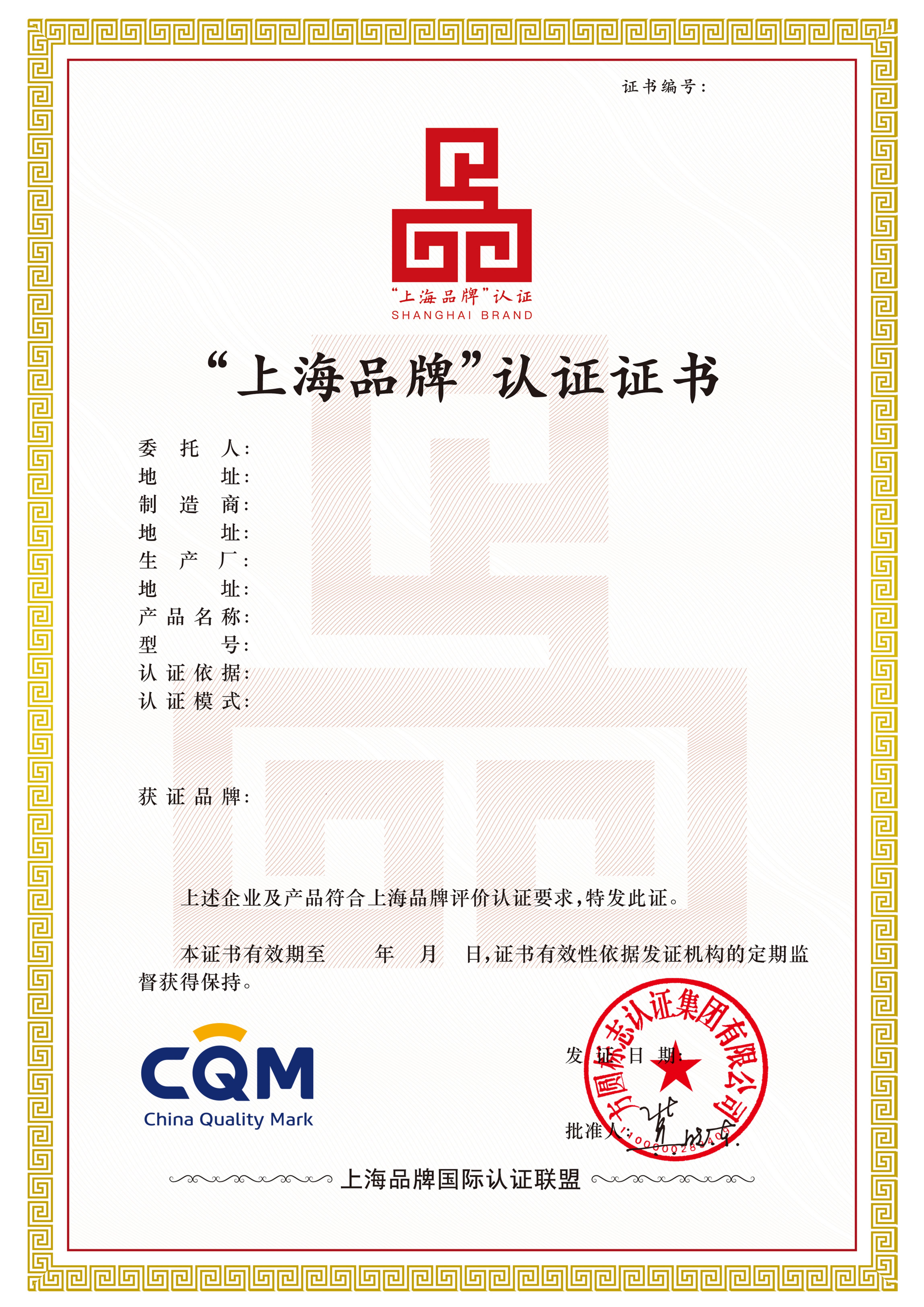 “上海品牌”认证证书: