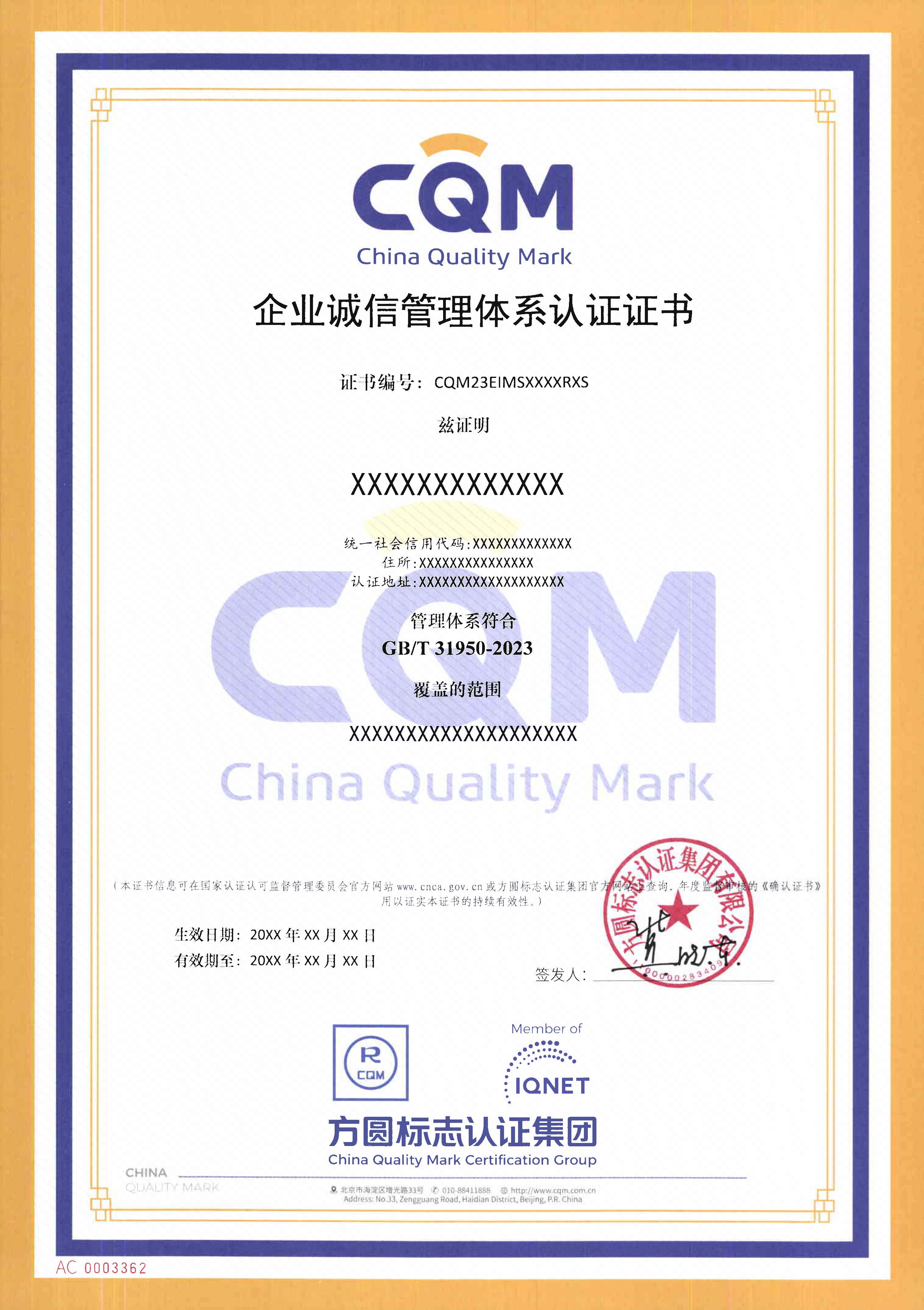 企业诚信管理体系认证证书