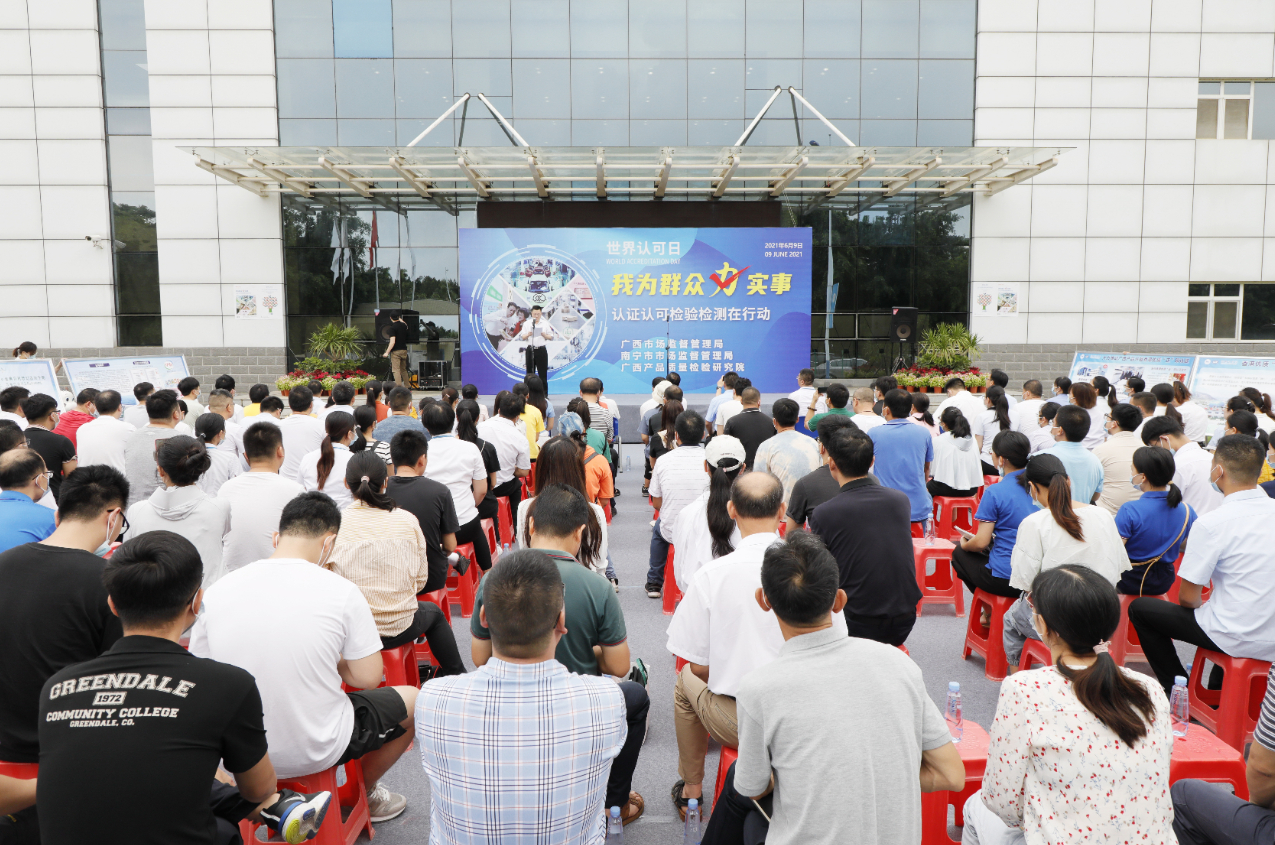 方圆标志认证集团广西公司协助广西市场监管局举办2021年世界认可日宣传活动。当天,来自省内的检验检测机构、认证机构、获证企业、消费者代表、媒体记者等200多人齐聚一堂,广西市场监管局党组成员、总工程师郭凯出席活动。