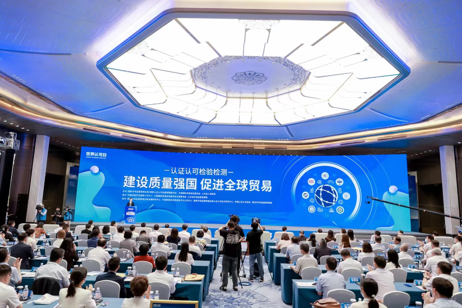 2023年6月9日,市场监管总局(国家认监委)联合中国贸促会、山东省人民政府在青岛共同举办世界认可日中国主题活动,方圆标志认证集团副总裁刘险锋受邀参加活动。活动期间,国家认监委与中国贸促会共同签署合作备忘录;发布认证认可检验检测服务“下基层、进企业、促贸易、惠民生”系列举措;认证认可检验检测从业机构共同发布《认证认可检验检测行业“建设质量强国 促进全球贸易”青岛倡议》。