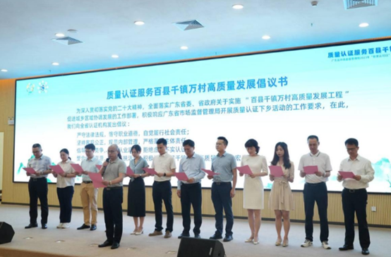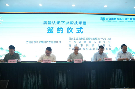 方圆广东公司承办由广东省市场监管局与梅州市人民政府在蕉岭县长潭镇联合举办的“质量认证服务百县千镇万村高质量发展”主题活动,共同启动广东省质量认证下乡活动。活动现场,方圆广东公司常务副总经理熊飞彪带领12家机构代表同台宣读“质量认证服务百县千镇万村高质量发展倡议”。方圆广东公司分别与梅州市供销合作社、广东省民宿行业协会、梅州焦化工业园区管委会签署质量认证帮扶协议,与国家水泥及制品质量监督检验中心(广东)签署绿色产品绿色建材检测认证合作协议。在与当地参会企业的业务咨询交流环节,与梅州淦源建材科技有限公司签署了绿色建材产品认证、质量、环境、职业健康安全管理体系认证、产品碳足迹等服务合作意向书。
