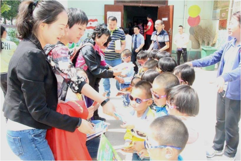 5月4日上午,公司员工组成的“朝阳志愿者服务队”到达蓝田县回归研究会儿童村,将全体员工们共同捐助的书籍、衣物、玩具及捐助款发放到每个留守儿童手中。