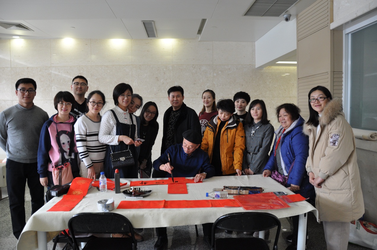 晚会开始前,特别邀请费悟等书法家结合春节传统文化、唱响社会正能量主旋律等内容,现场挥毫春联、福字上百幅,免费赠送现场观众,营造了春节喜庆祥和的气氛,提前送上了新春祝福。方圆吉林公司员工各喜得春联、福字一幅。