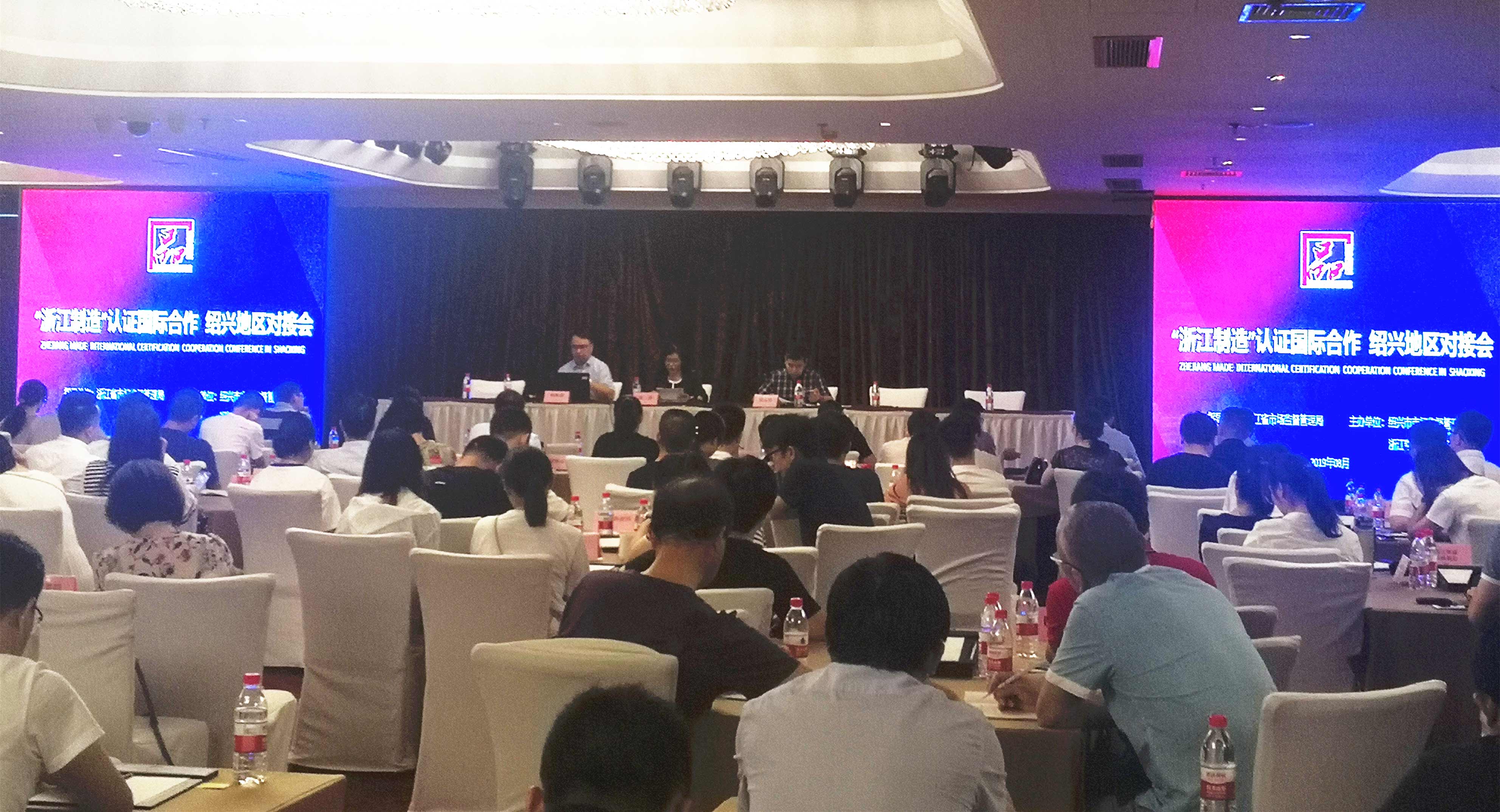 8月8日上午,绍兴地区“浙江制造”认证国际合作对接活动在绍兴中金豪生酒店举行。浙江省市场监督管理局合格评定监督管理处、绍兴市及各区县市场监督管理局相关领导出席会议。